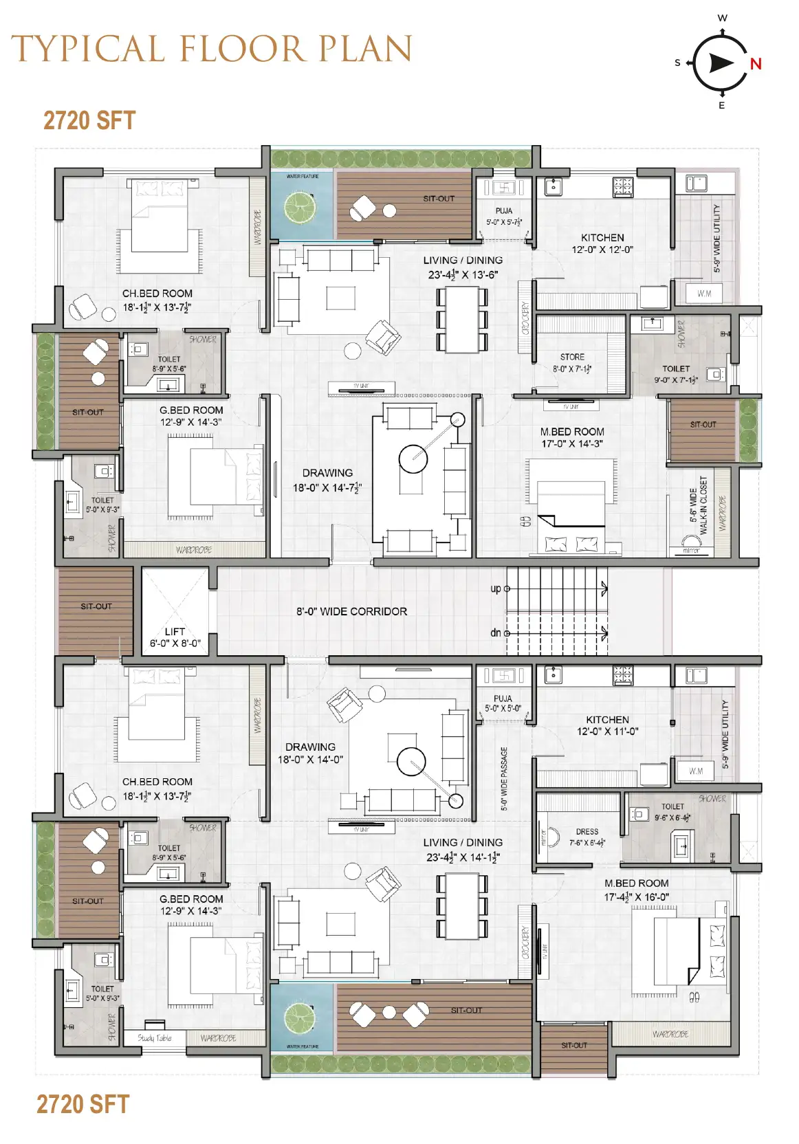 For all its plus points, Anand is a boutique project catering to only ten aspiring families. By no means they are smaller, the ten apartments are sprawling and feel like vertical bungalows. With only two apartments per floor, you’re open to outdoors on three sides enjoying sunrises and sunsets and fresh breeze from generous sit-outs and balconies.